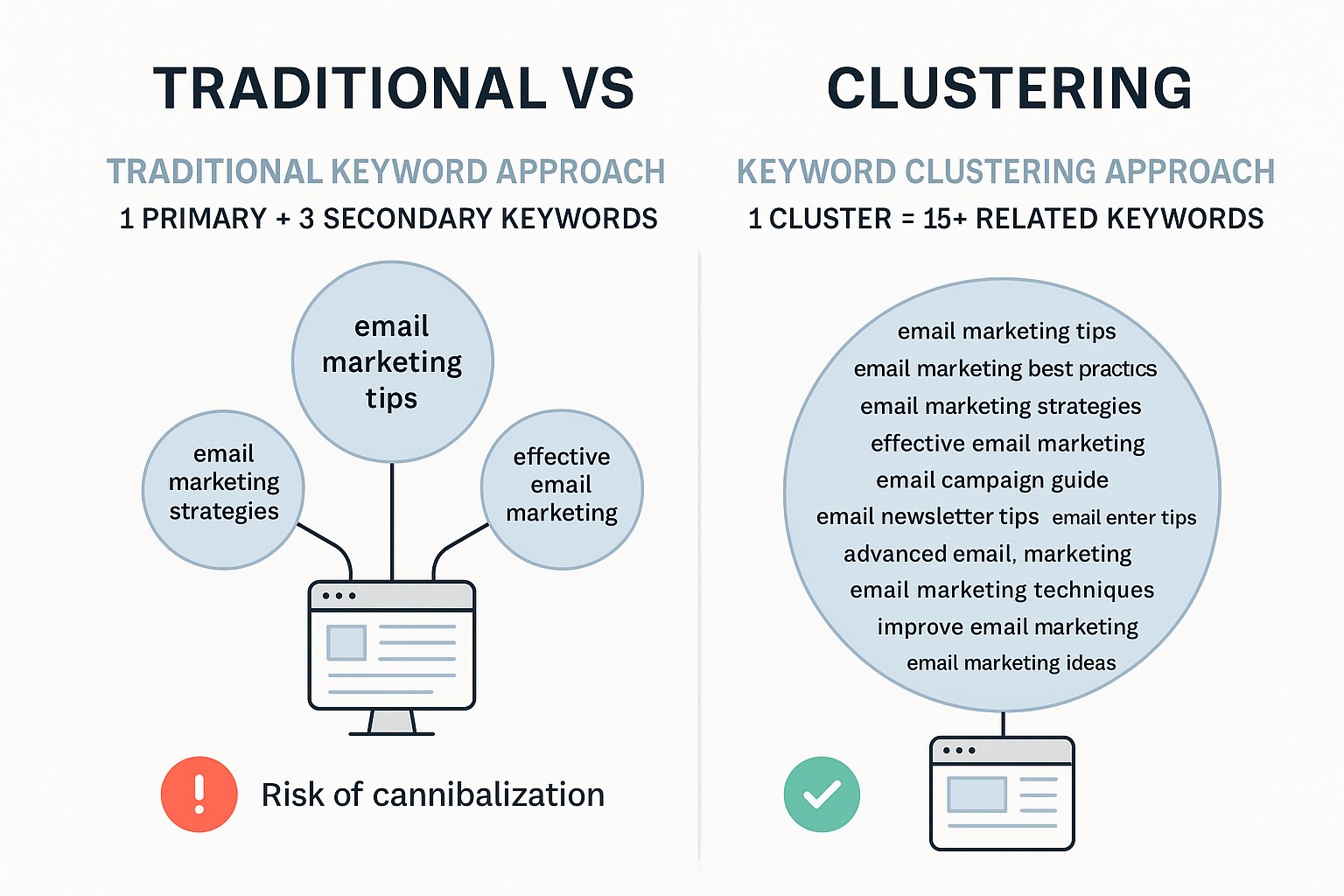 Every SEO expert tells you to use 1-4 keywords per page. Following this advice is why your pages compete against each other instead of dominating search results. There's a smarter approach that prevents cannibalization while capturing 10x more traffic.